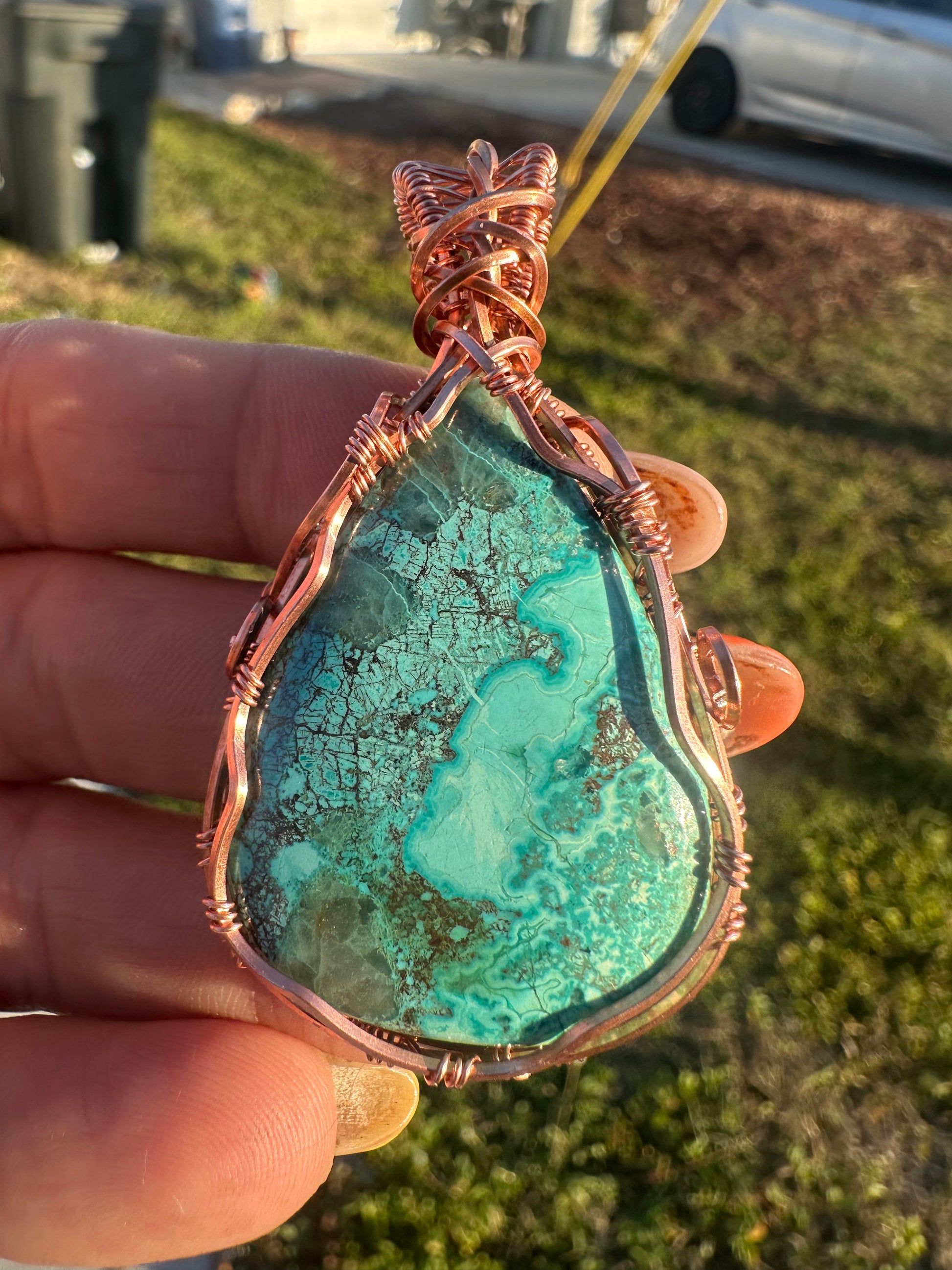 Shattuckite copper pendant